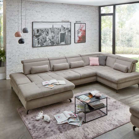 2,5-Sitzer (2562) OrthoSedis Carena: PG 2/6 Mono taupe, AT L, Rücken echt, hoher Rücken, Standardnaht, FK, Metallfuß 004 rund, AL-Fkt. in Stoff
