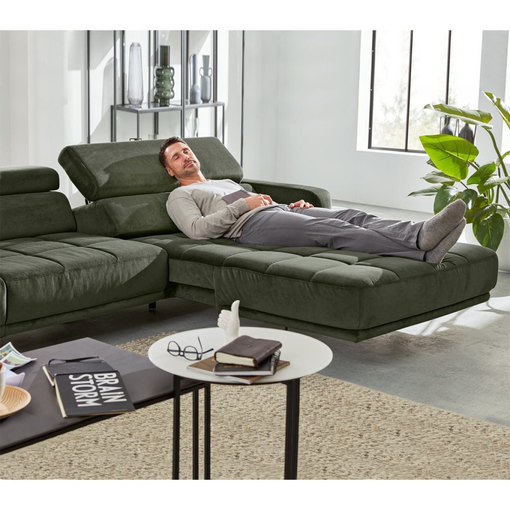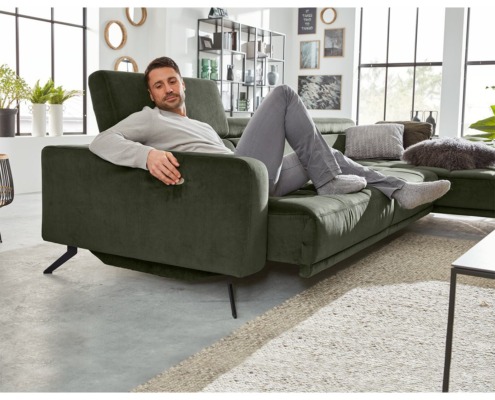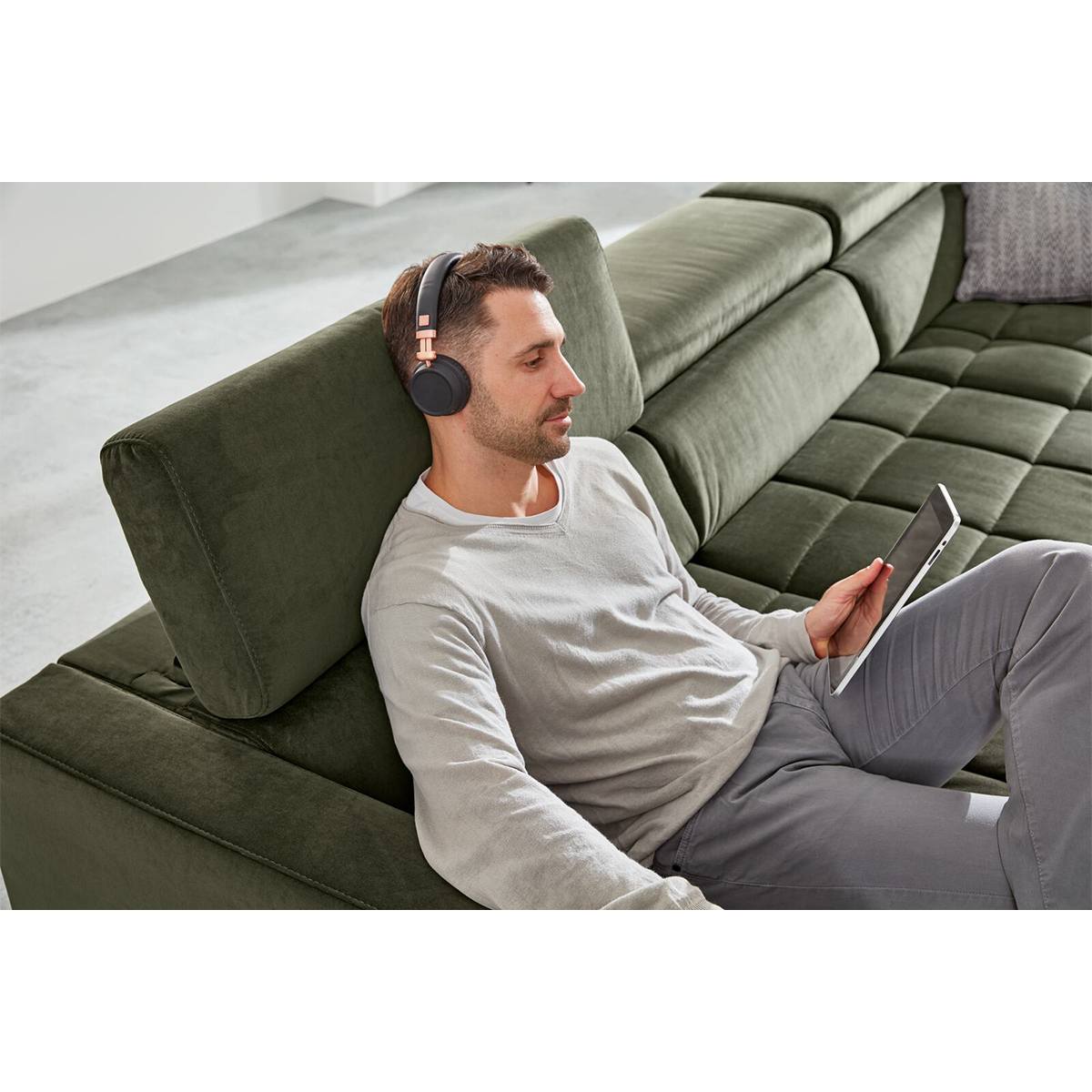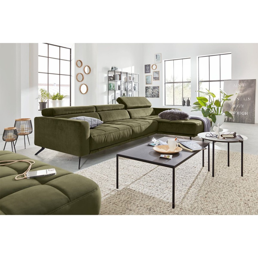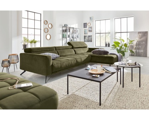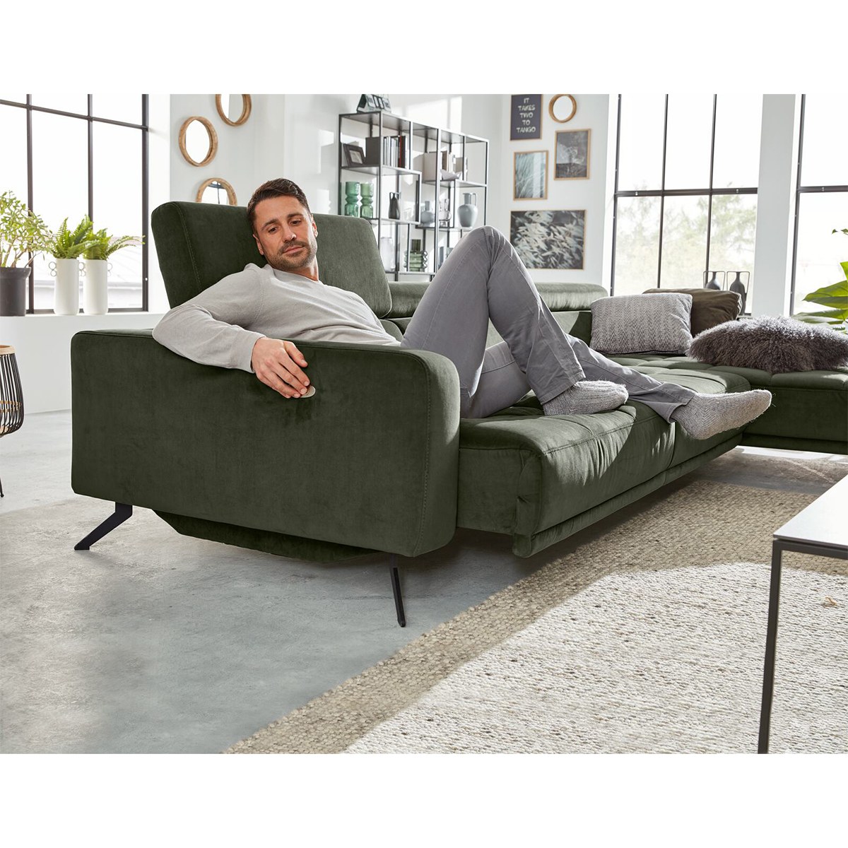 Interliving Sofa Serie 4303, Bezug Stoff Salsa olive, Metallfuß schwarz, best. aus: 3-Sitzer mit Armlehne links inkl. Canapé gerade mit Armlehne rechts inkl. Kopfteilverstellung. Stellmaß ca. 323×190 cm. Bezug: 100% Polyester. Ohne Zierkissen und Decke