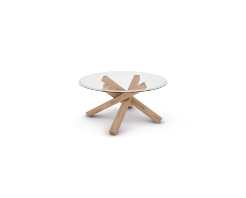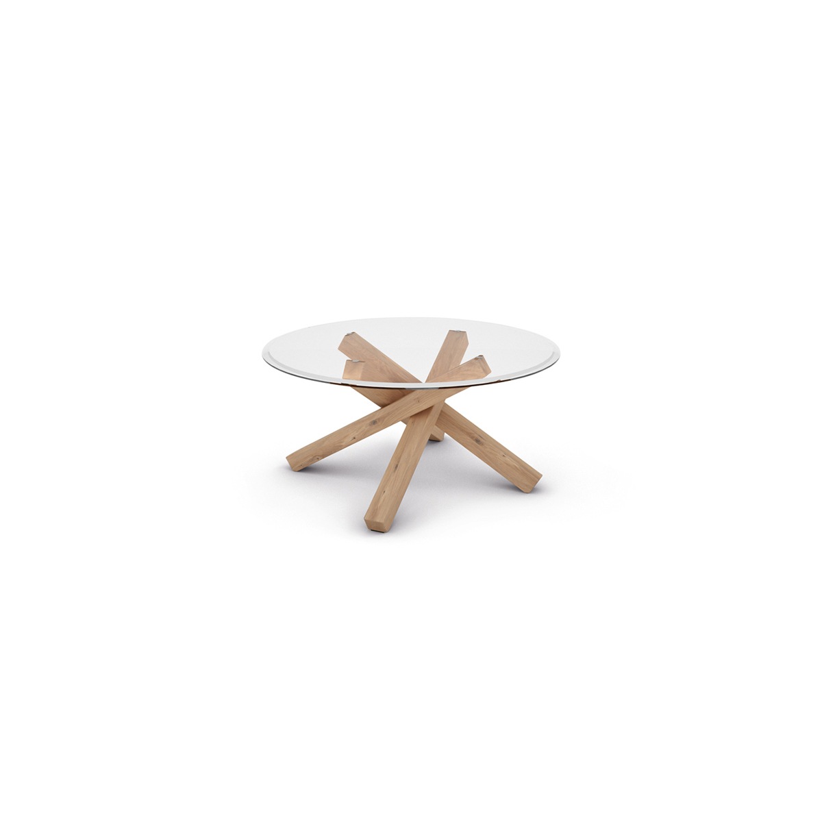 Kreuzcouchtisch, rustikale Asteiche Hartwachsöl Bianco, geschliffen, Weißglas, Kreuzgestell Holz, B/H/L ca. 90×44,6x90cm