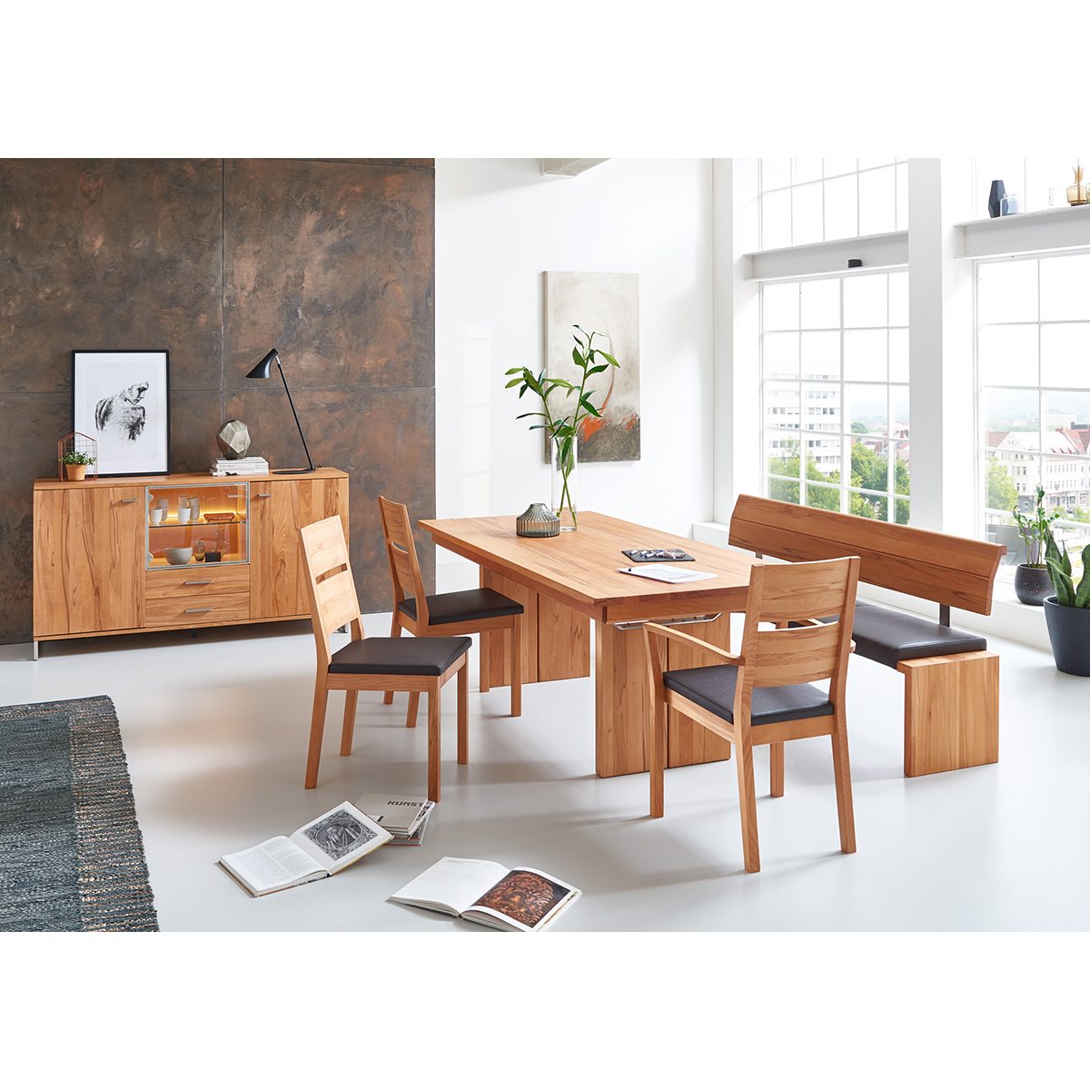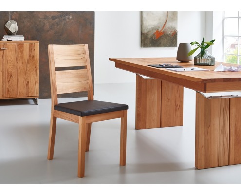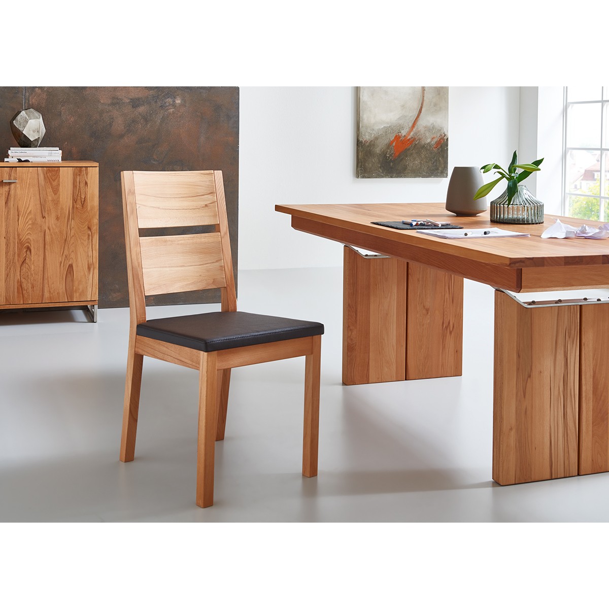 Stuhl, rustikale Asteiche Hartwachsöl natur geschliffen, Holzbeine, fest gepolstert, Ton in Ton, Bezug Verano Nussbraun, B/H/T ca. 44,5x95x56cm, SH/ST ca. 48,5/42,5cm, B/H/T ca. 44,5x95x56cm
