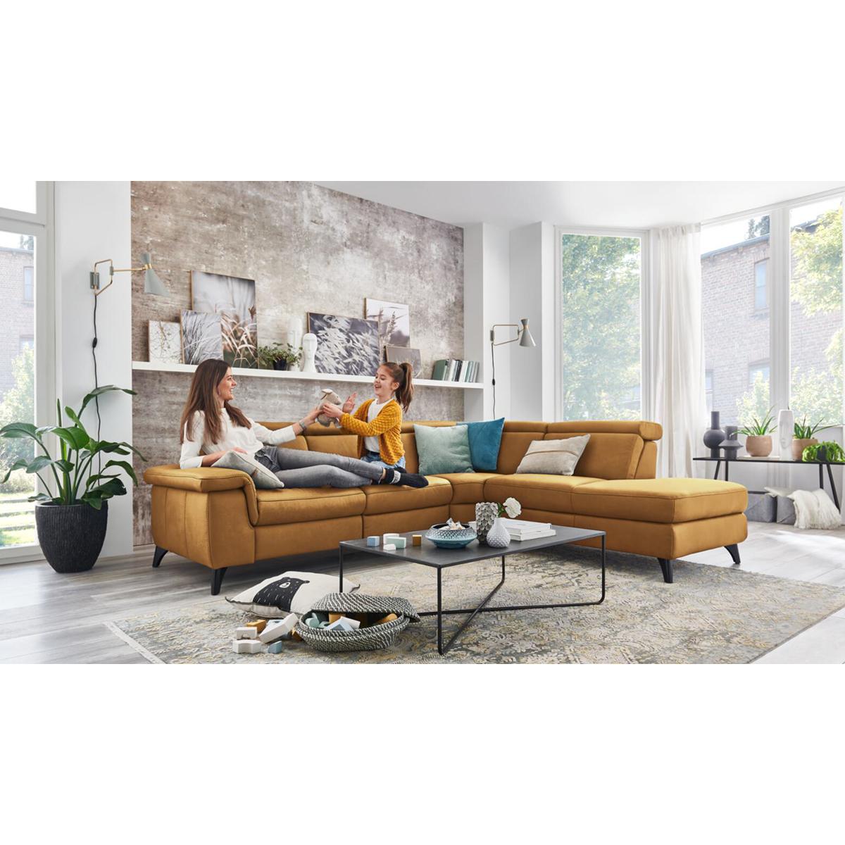 Ecksofa Bezug Leder Punch dijon, Chromfuß schwarz