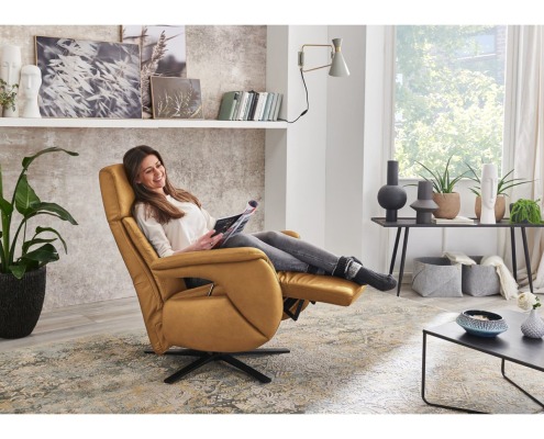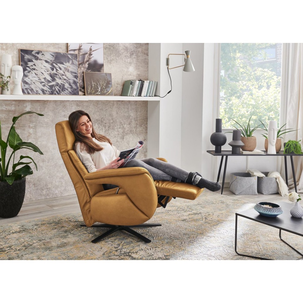 RELAXSESSEL, Bezug Leder Punch dijon, manuell verstellbar mit Gasdruck, Sternfuß schwarz.