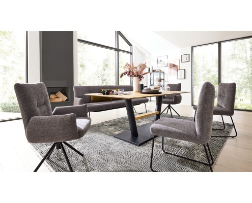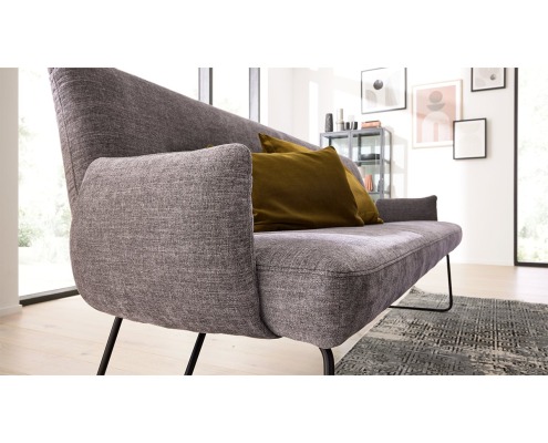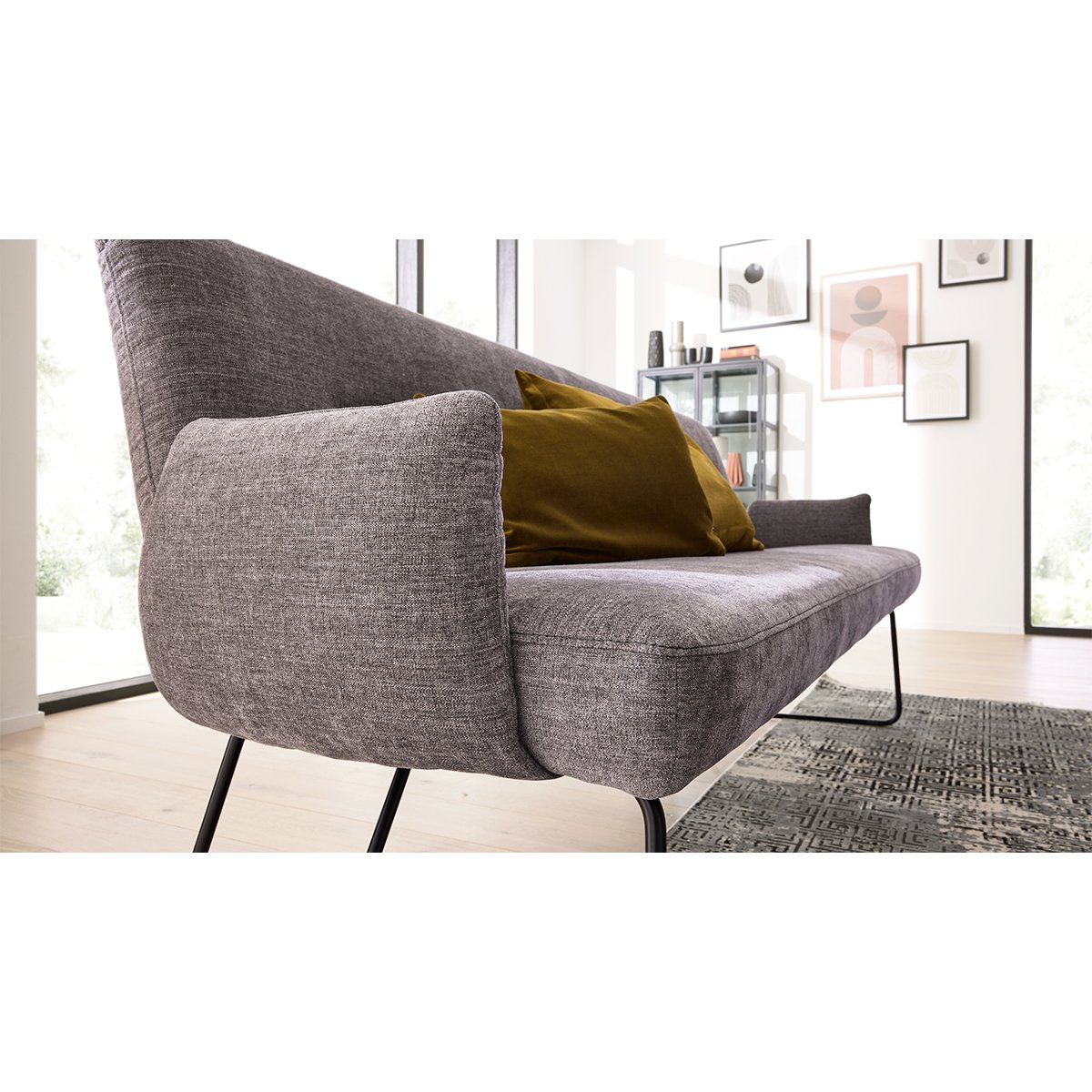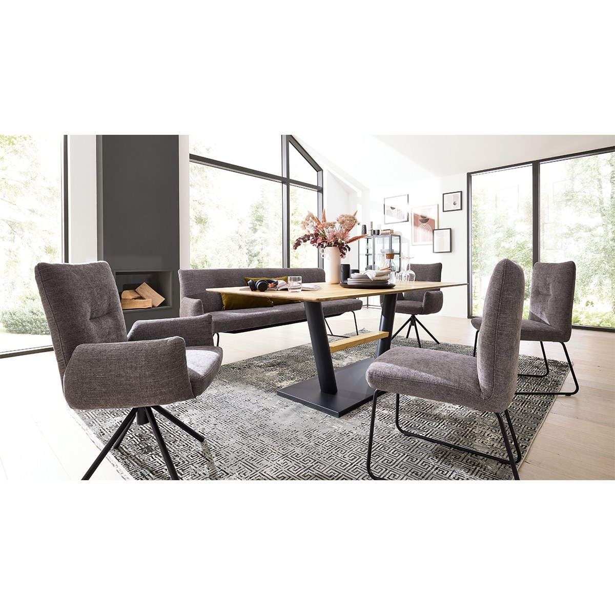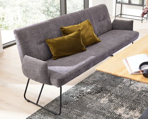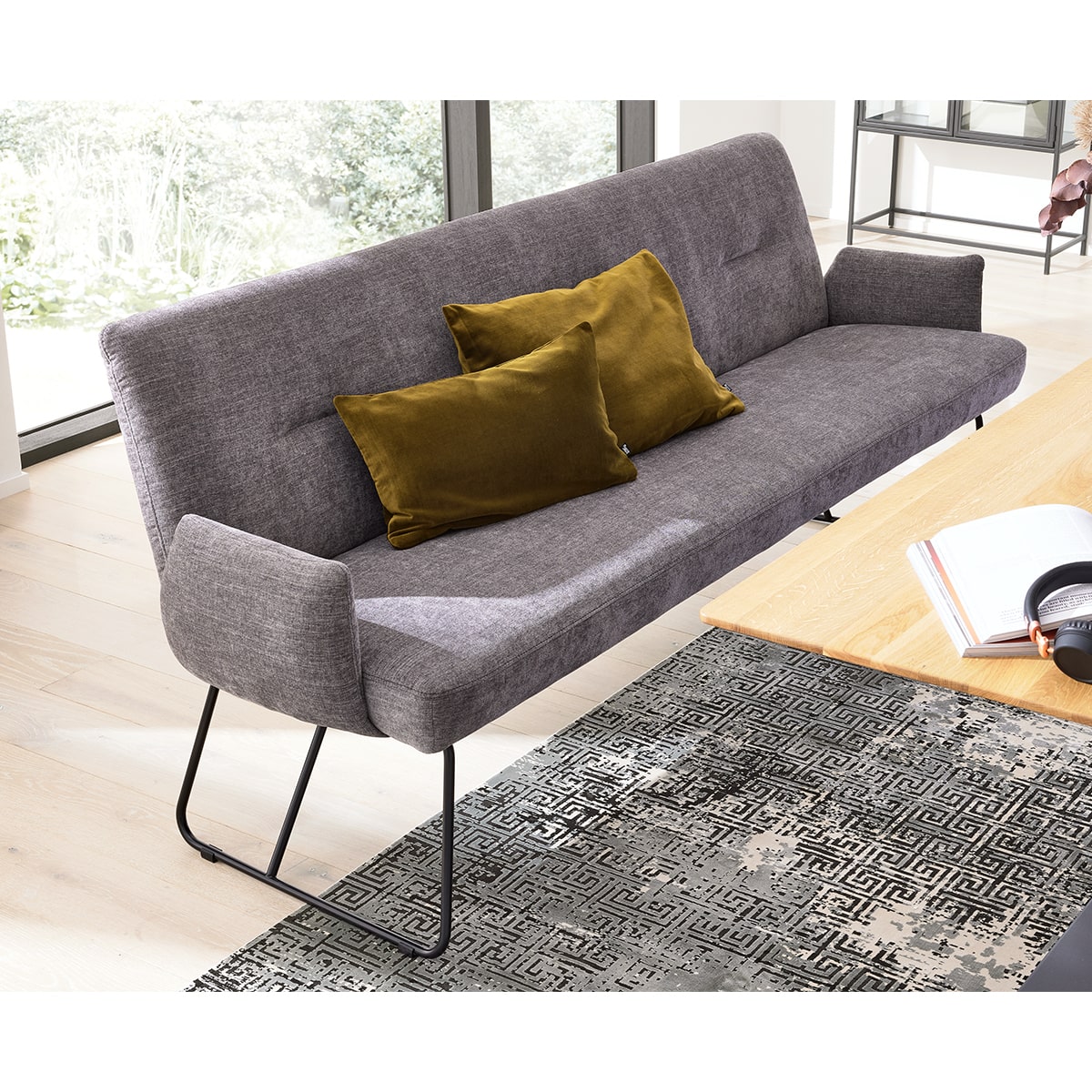 Interliving Esszimmer Serie 5504 – Polsterbank mit Armlehnen, ca. B206 cm, Bezug Stoff Concrete grey, mit Einzug in Rückenlehne, Metallkufe oder Stativgestell schwarz. Bezug: 100% Polyester, ohne Zierkissen.