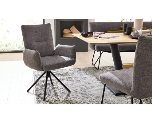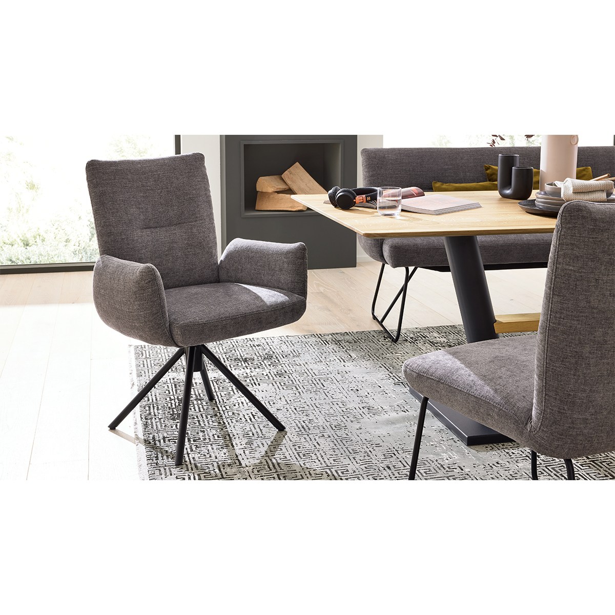 Polstersessel, Bezug Stoff Concrete grey, Metall Kufe oder Stativgestell schwarz, mit Armlehnen, 360° drehbar mit Rückholfunktion