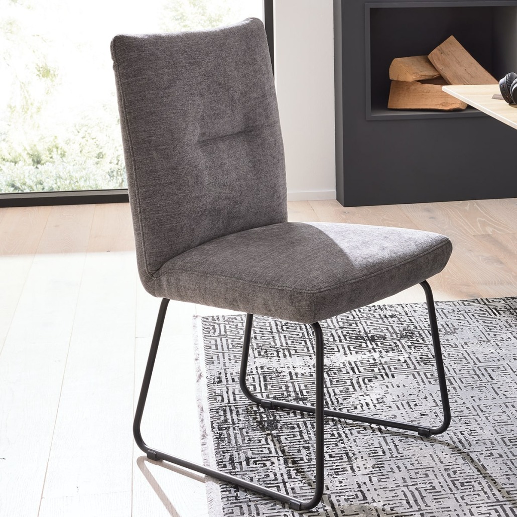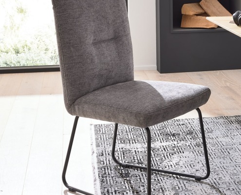 Interliving Esszimmer Serie 5504 – Polsterstuhl, Bezug Stoff Concrete grey, Metall Kufe oder Stativgestell schwarz