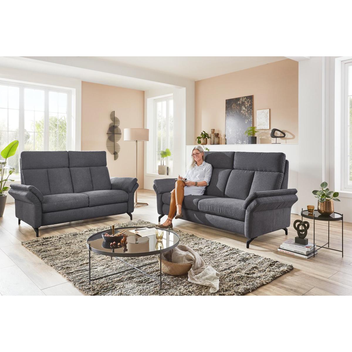 POLSTERGARNITUR, Bezug Sofia clean anthrazit, Metallfuß schwarz matt, best. aus 2x 2-Sitzer, Rücken Spannstoff. Bezug: 85% Polyester, 15% Polyamid