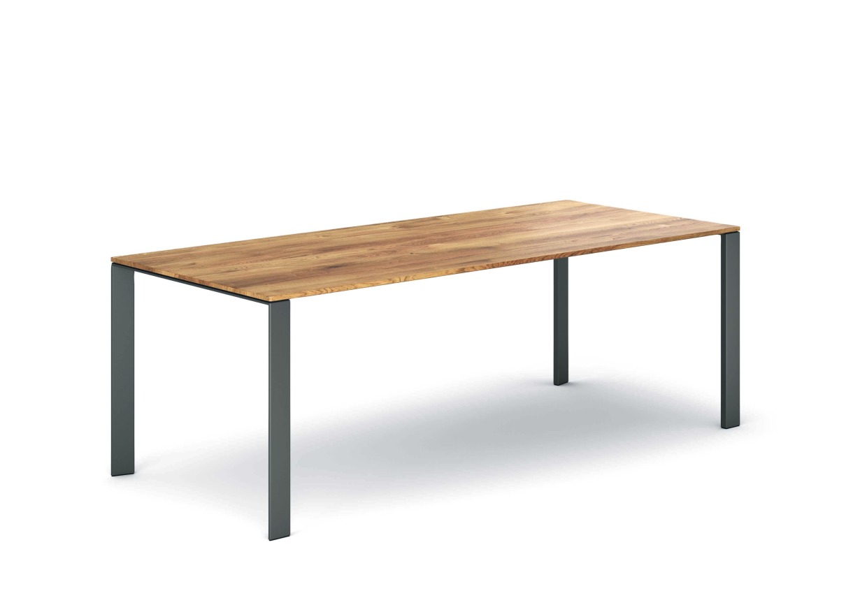 4-Fuß-Esstisch 20460007: 4/rustikale Asteiche Hartwachsöl natur geschliffen Metallbeine RAL7021 Schwarzgrau F3 Gestellauszug + 80cm