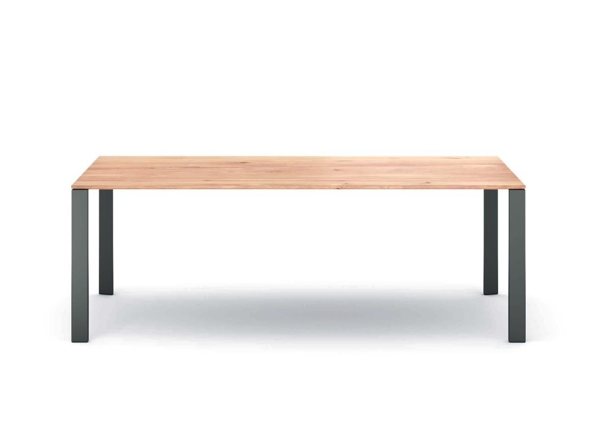 4-Fuß-Esstisch 20460007: 10/rustikaler Nussbaum Hartwachsöl natur geschliffen, Holzbeine m. Metallapplikationen RAL7021 Schwarzgrau, L/B/H ca. 220x95x76cm
