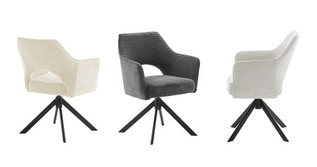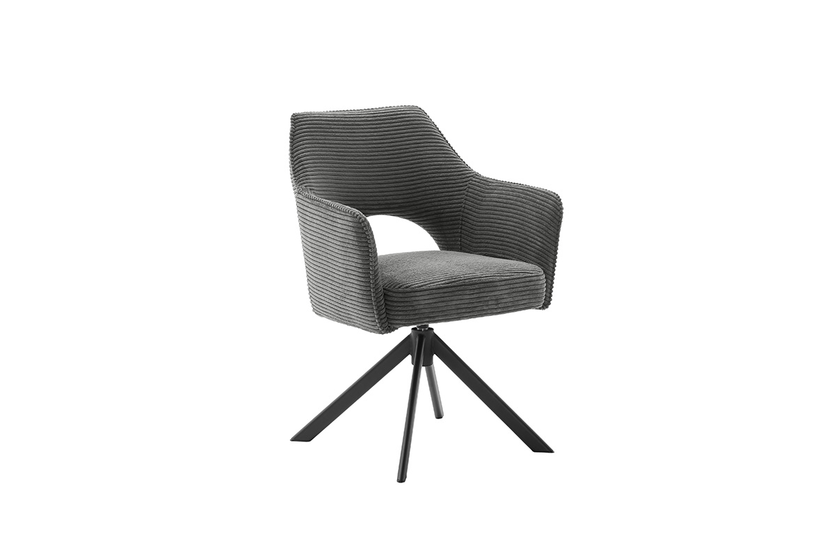 4-Fußstuhl mit Armlehnen 01362112: Breitcord-Optik Anthrazit, Gestell oval schwarz matt lackiert, Taschenfederkern 360° dreh., belastbar bis max. 120 kg
