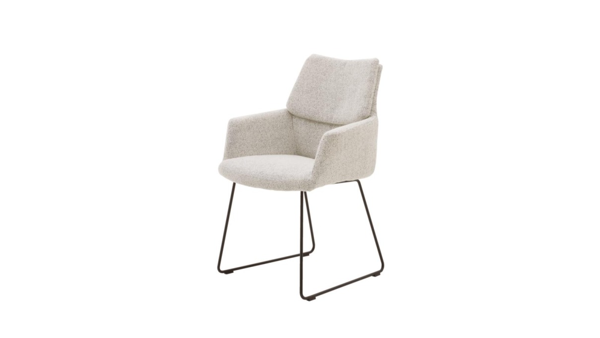 Armlehnenstuhl Interliving 5118: Bezug Bouclè Elegant wish champagne Kufen-Gestell Eisen schwarz B/H/T ca. 60x92x62cm, SH/ST ca. 50/44cm
