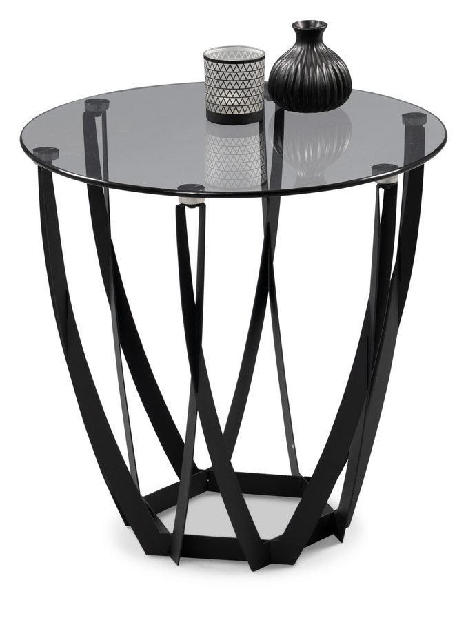 Beistelltisch 02720219: Tischplatte Sicherheitsglas grau, Gestell Metall schwarz, D ca. 50 cm, H ca. 50 cm