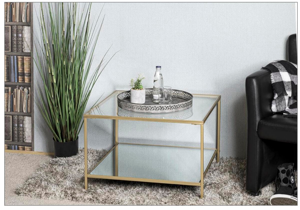 Beistelltisch 06070345: Ablage Spiegel, Sicherheitsglas, Gestell Stahlrohr gold lackiert, B/H/T: ca.60x45x60cm