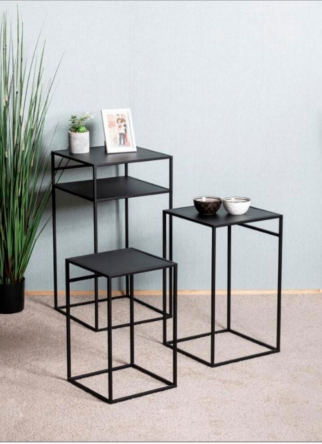 Beistelltisch 3er-Set (25508) 06070350: Ablage Metall schwarz, Stahlrohr schwarz lackiert, B/H/T: ca.26/30/34×42/50/64×26/30/34cm