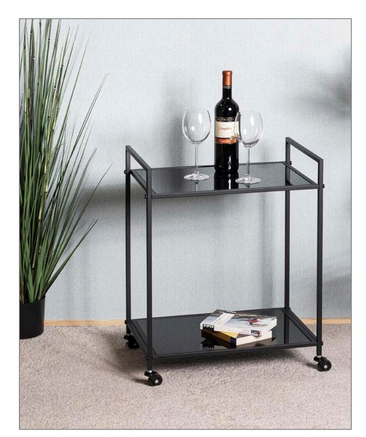 Beistelltisch auf Rollen (24597) 06070352: Ablage Sicherheitsglas schwarz, Stahlrohr schwarz lackiert, B/H/T: ca.50x69x35cm