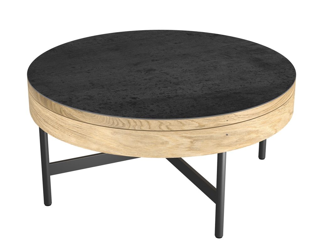 Beistelltisch (ET422TI) Interliving 6216: TI Keramik Titan, Metallfüße schwarz lackiert, MDF mit Eiche D ca. 44 cm, H ca. 52 cm