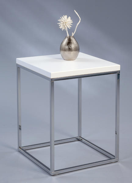 Beistelltisch Magnani 3: Dekor weiß matt, 28 mm, Met., verchromt Dk weiß matt, B/H/T: ca.40x52x40cm