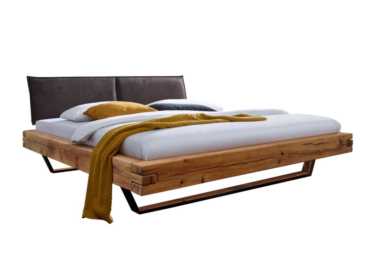 Bett ca. 180x200cm 05390008: Wildeiche massiv geölt Polsterkopfteil anthrazit Fuß Metallkufe m. Holzeinlage