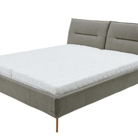 Bett ca. 180x200cm 05390009: Wildeiche hell massiv geölt Holzkopfteil m. schwarzer Lisene Metallkufe