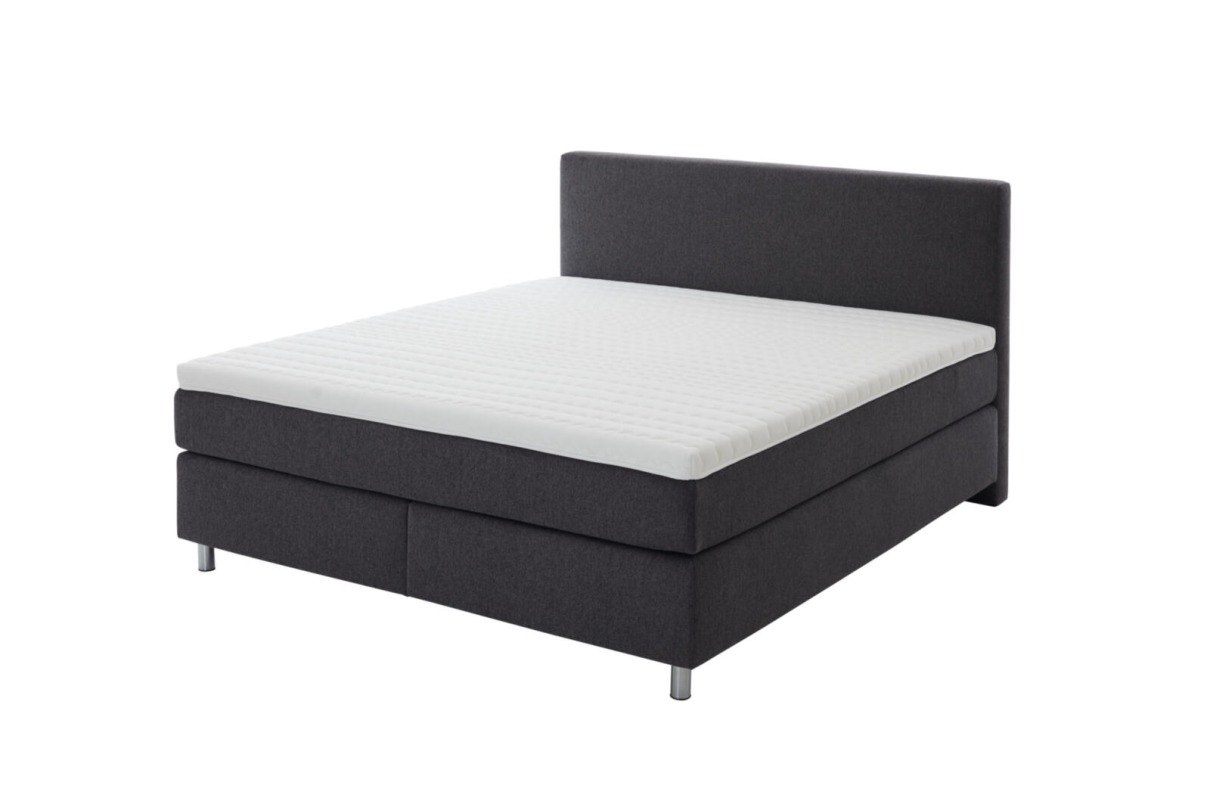 Boxspringbett Comfortmaster 07520001: PG1/Selva azur 71, Fuß KF1000 10cm schwarz, Unterbau Bonell, Box durchg., KT100, Topper KS 5cm durchg., Matratze TFK 500 H2 durchg.