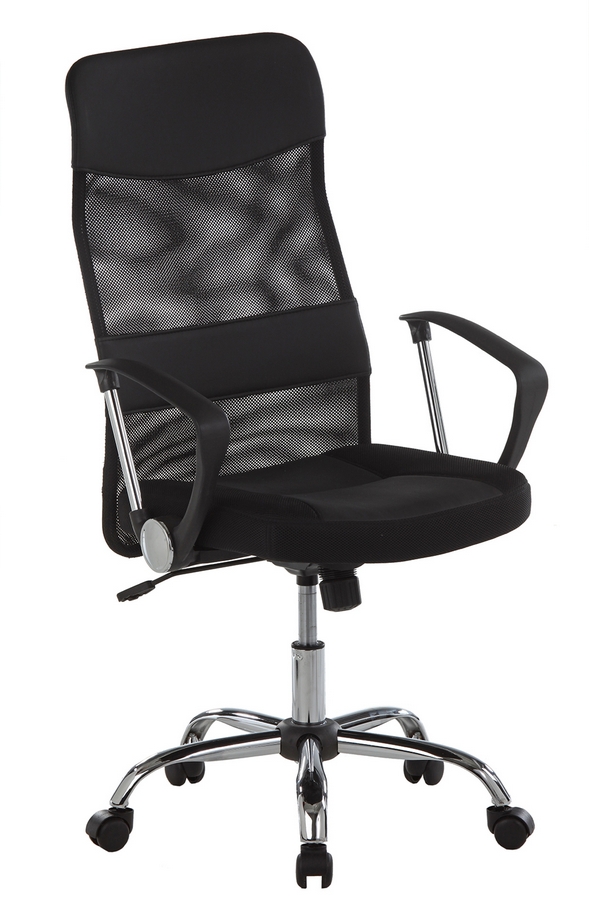 Chefsessel 14370027: NetzstoffKunstleder-Metall, Drehkreuz, Armlehnen verchromt, Sicherheitsdoppelroll., Rückenunterstü. belanstbar bis 120kg, Höhenverst. ca. 111-118,5 cm