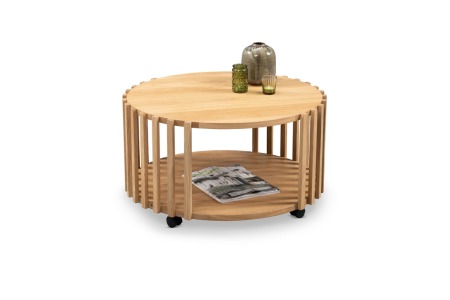 Couchtisch 02720220: Wildeiche massiv mit Rollen D ca. 70 cm