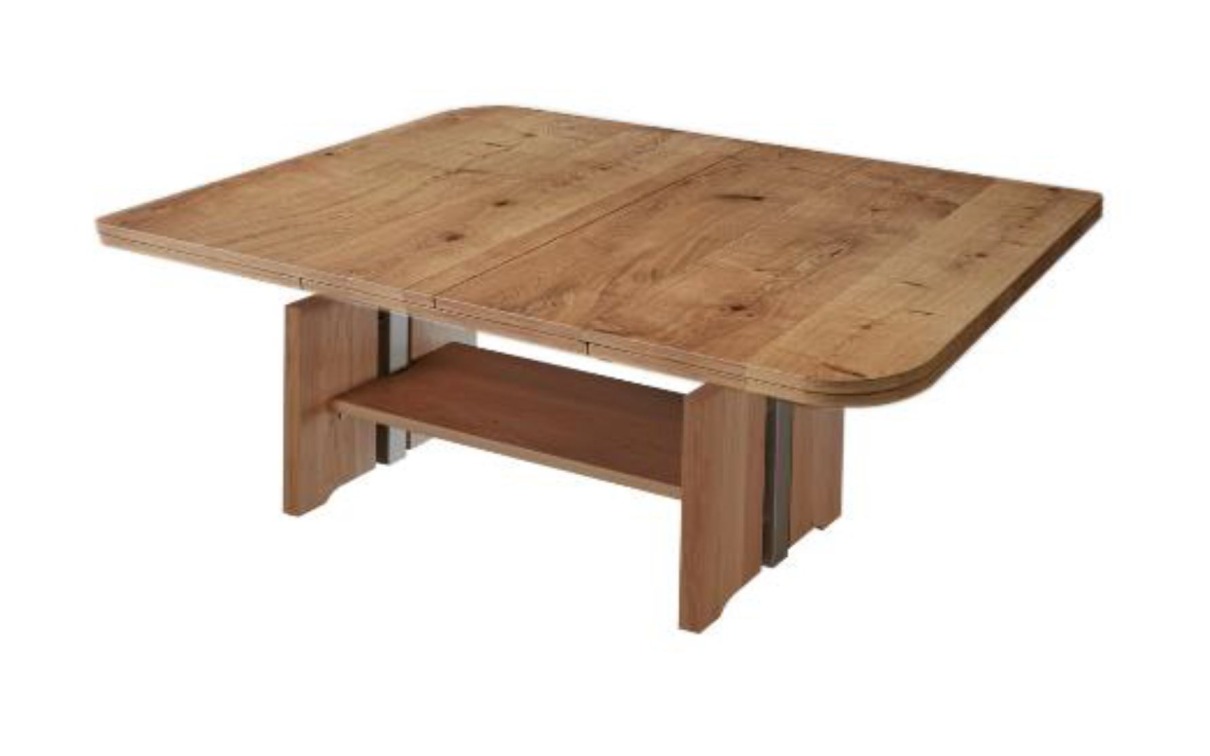 Couchtisch 05372111: EBI wildeiche bianco lackiert, Kombi längs Auszug, mit Ablageboden, Lift Mechanik, ca.120(160)/70/56-75cm