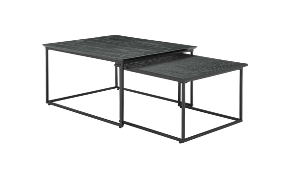 Couchtisch 2er Set ROOMIO NO. 2001: Mango massiv schwarz gebeizt u. lackiert Fußgestell Metall schwarz B/H/T ca. 80x40x70cm u. 55x35x60cm