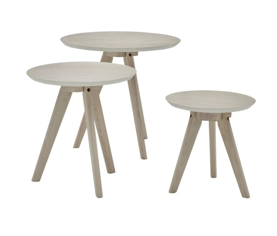 Couchtisch 3er Set ROOMIO NO. 2000: Esche Echtholzfurnier, weiß geschwaschen Füße Esche massiv, weiß gewaschen D/H ca. 50/45 40/40 32/32cm