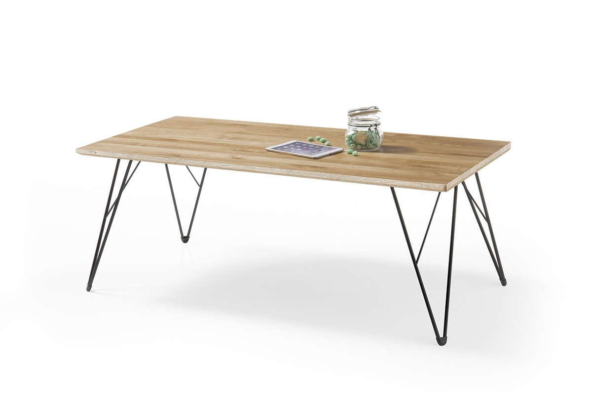 Couchtisch (58345AS9) 01360145: Asteiche massiv geölt, Gestell Metall schwarz,B/H/T ca.120x46x60cm bel. bis max. 10kg