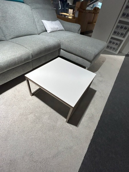 Couchtisch ca.60x35x60cm Madrid 1 : Platte weiß HGL lack. m.Hirnholz- u.Längskante,Gestell Edelstahloptik