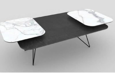Couchtisch (CT643TI) Interliving 6205: Stahl schwarz lackiert, Keramikplatte TI/titan, 2 Drehplatten MA/Marmoroptik