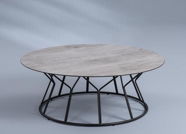 Couchtisch Mala 3: Platte Sicherheitsglas Keramik optik, Gestell Metall schwarz, H: ca.35cm, D:ca.90cm
