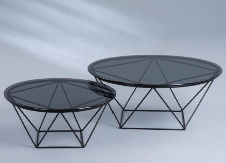 Couchtisch Marienberg 2: Platte Sicherheitsglas grau ca.8mm, Gestell Metall schwarz H: ca.36cm, D: ca.90cm