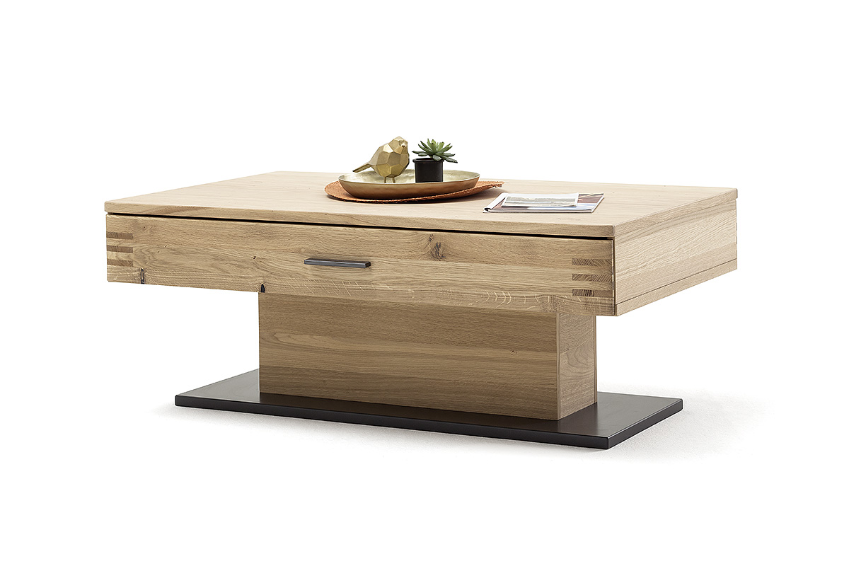Couchtisch T65 12090019: Balkeneiche Bianco DL massiv, Oberfl. geölt, 1 SK, Bodenpl. anthr., B/H/T: ca.115x45x70cm