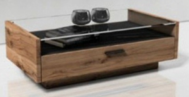 Couchtisch (Type 65) Interliving 2027: K: Asteiche furniert, Marmoroptik, 1 Glastischplatte, 1 SK, Sockel, B/H/T: ca.111,8x42x65cm