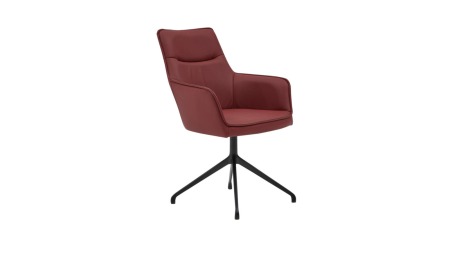 Design-Schalensessel (3852-04-233) Interliving 5603: 233/Leder Florenz burgundrot, Stativ- gestell, Eisen schwarz, Drehfunktion, SH/ST/SB/ALH: ca.48/43/47/65cm
