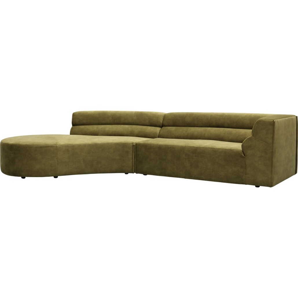 Eckkombination Hollywood: A0165613, Antique 59 Moss, 1x Ottomane rund links, 1x 2-Sitzer AL rechts, Füße