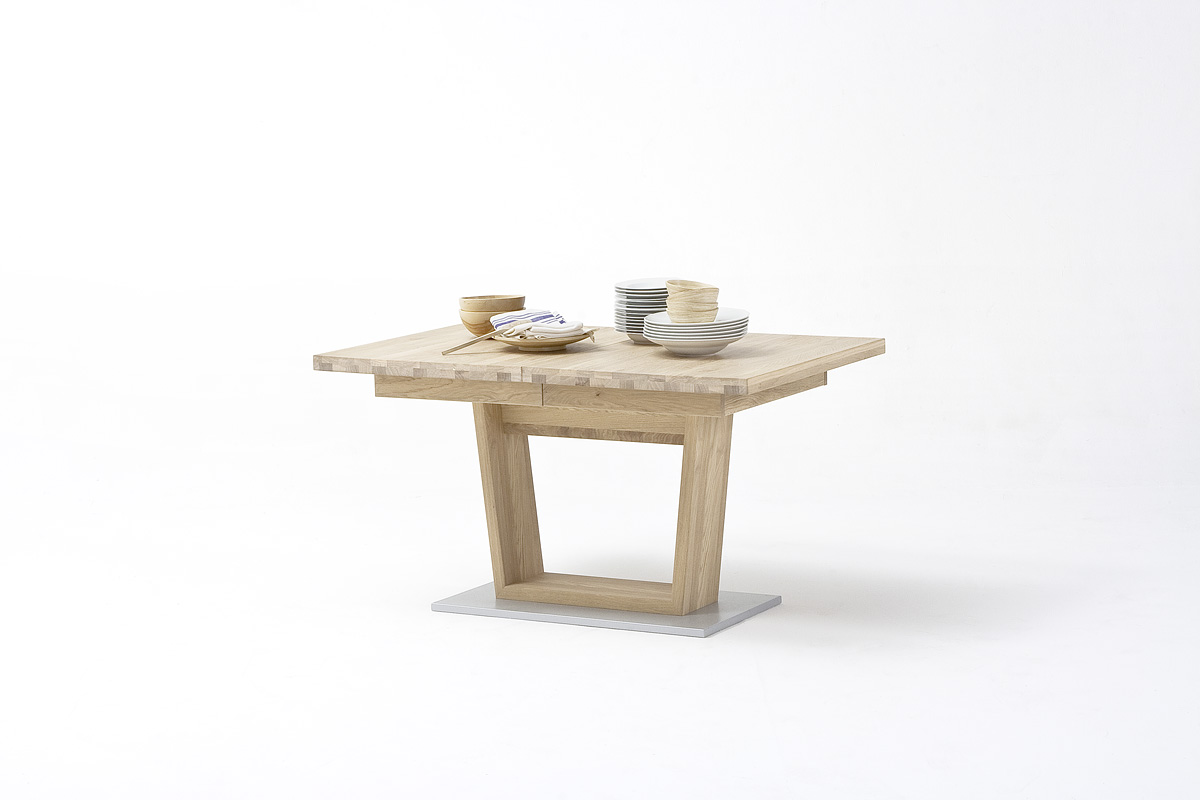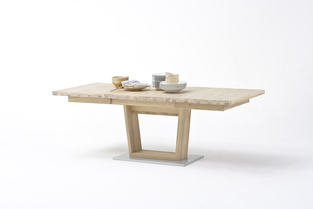 Esstisch 01360005: ESP11T61 Asteiche Bianco mass.geölt V-Fuß, ca. 140(220)x77x90 cm