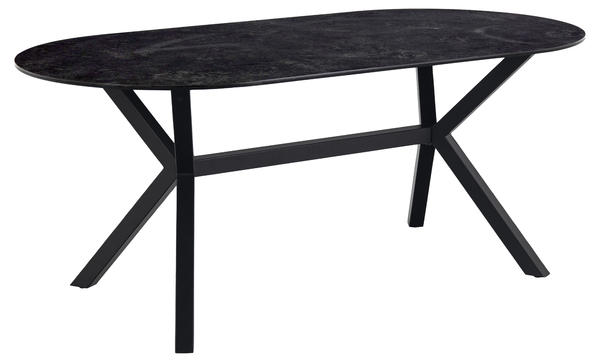 Esstisch 14010101: Oval, Glas/Keramik, Fairbanks schwarz, Gestell Metall pulverbesch. rau, schwarz matt, B/H/T: ca.180x74x90cm