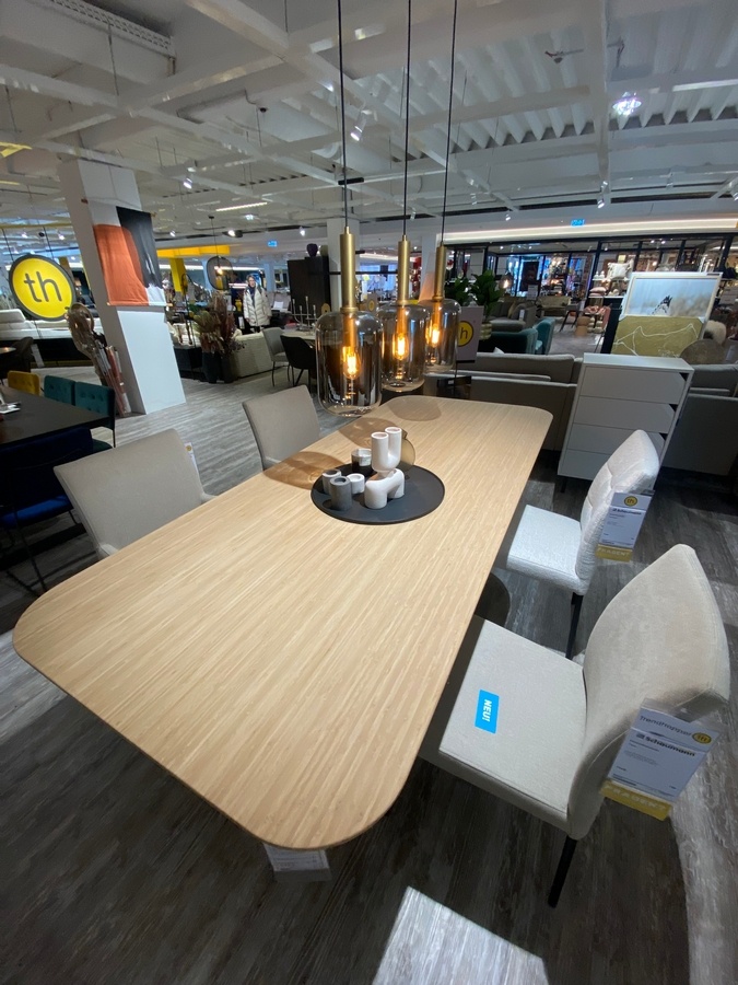 Esstisch Bambu: A0155429, Straight round edge (rechteckig) 240 x 100 - Turm Gestell Metall, H / B ca. 76 / 100 cm
