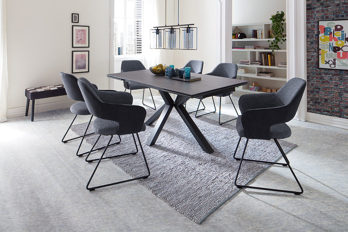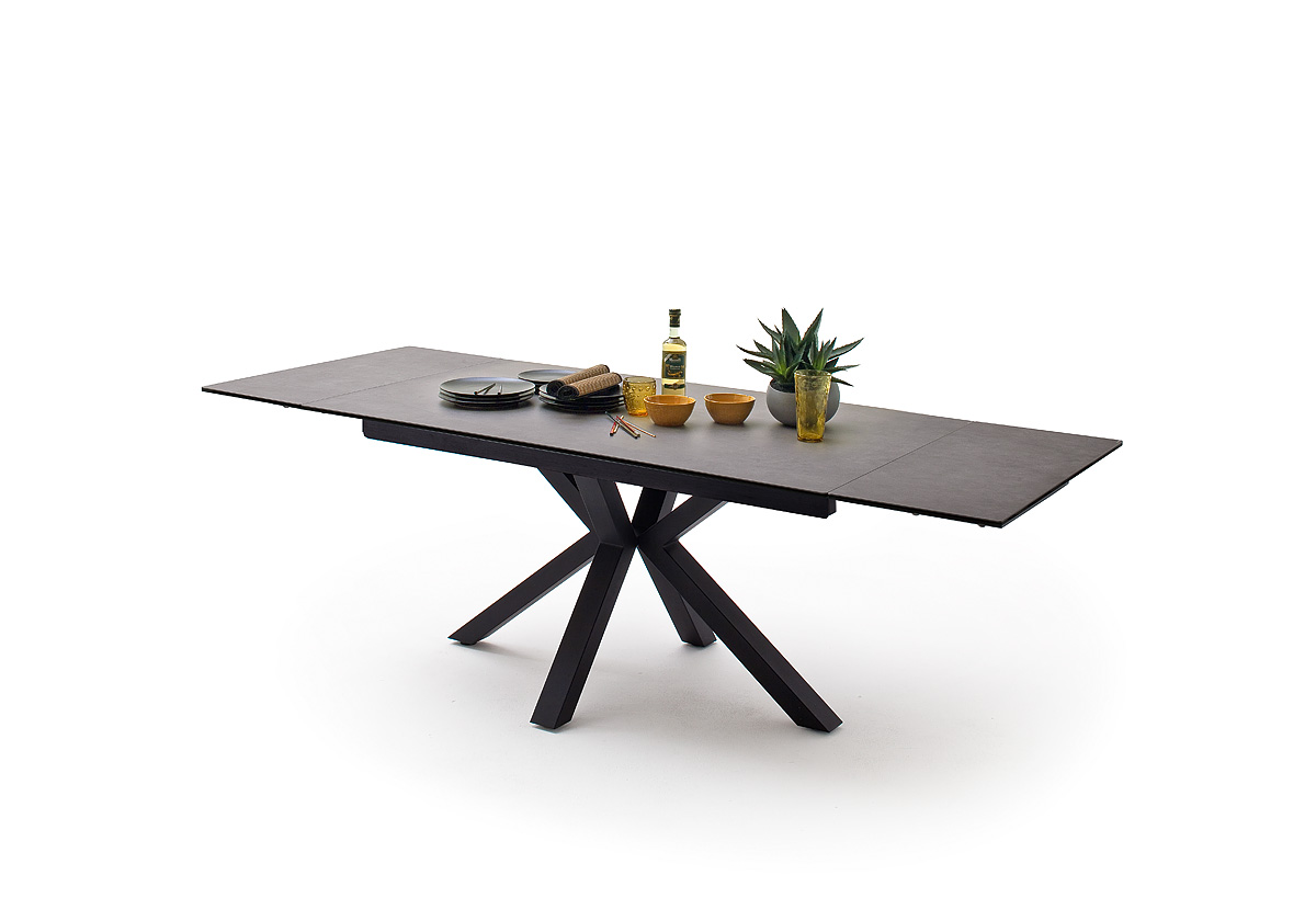 Esstisch ca. 160(240)x90 cm 01360170: anthrazit, Keramik/Sicherheitsglas schwarz/13mm, Gestell Metall schwarz matt lackiert, Stirnauszug, B/H/T: ca.160(240)x76x90cm