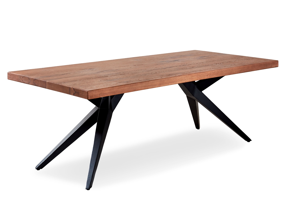 Esstisch ca. 180x100cm 05310153 Vintage: 45-Balkeneiche antik massiv struktur- gehobelt, Wachseffekt-Oberfläche, Y-Gestell Roheisen geschwärzt,
