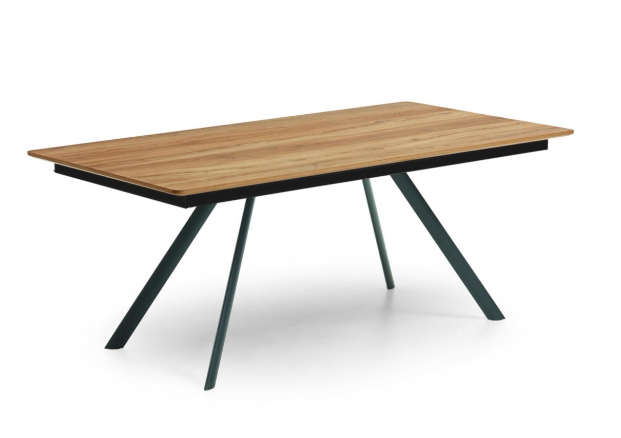 Esstisch ET V39: HC-Dekor Halifax Eiche goldbraun, 18-Metall anthrazit matt, L/B/H: ca.190(290)x100x75cm