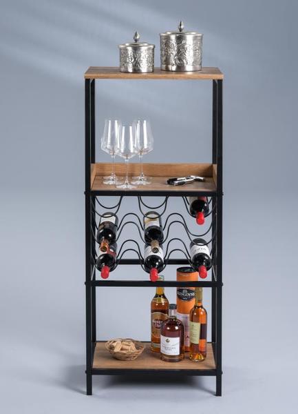 Flaschenregal Moreau: MDF Dekor Eiche braun, Gestell Metall schwarz, für ca. 9 Fl. B/H/T: ca.50x124x31cm