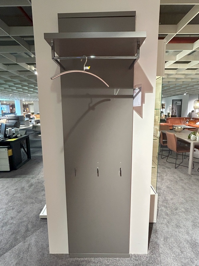 Garderobenpaneel - 32558 Vision: 1/Lack taupe, 6 Raster, 1 Paneel, 1 Paneelboden (ohne Überstand), 1 Garderobenst., 3 Haken in Chrom