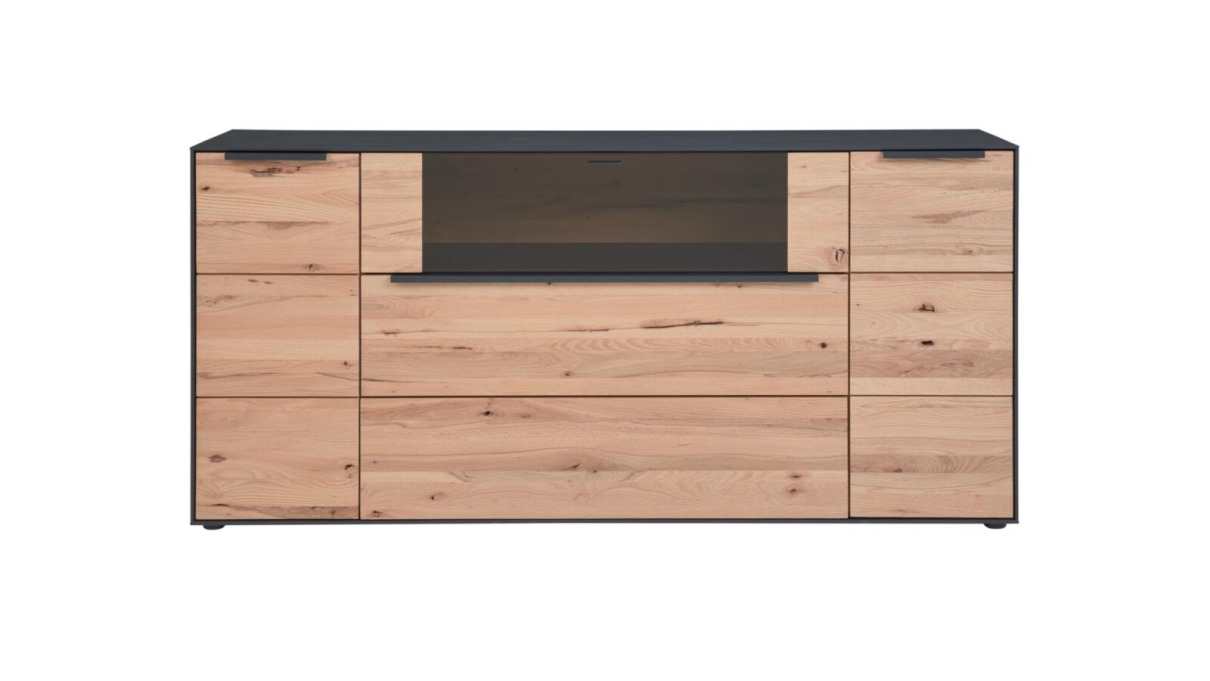 Highboard Interliving 2026: Riffbuche massiv, Kernesche gebürstet u. anthrazit gebeizt, B/H/T ca. 146x105x44 cm