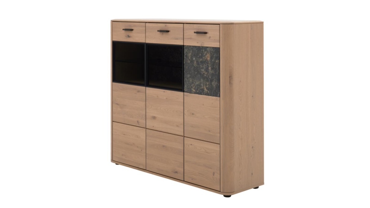 Highboard Interliving 2029: Front: Wildeiche massiv Korpus: Wildeiche furniert / Granit-Steinoptik B/H/T ca. 132x119x39cm
