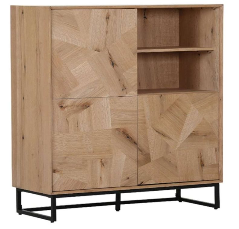 Highboard ROOMIO NO. 2002: Korpus: Eiche Echtholzfurnier natur Front: Patchwork-Design, Fußgestell Metall schwarz B/H/T ca. 100x120x42cm