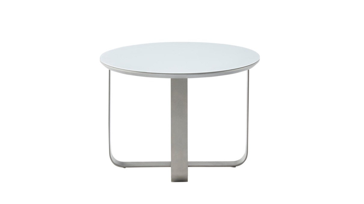 Interliving Couchtisch 6203 6203 Interliving: Glas weiß satiniert/edelstahlfarbig IL0400-GSI, Ø/H: ca. 80 x 45 cm