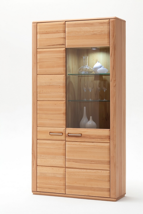 Kombi-Vitrine Melissa 12090018: Kernbuche teilmassiv geölt B/H/T: 107 x 209 x 38 cm